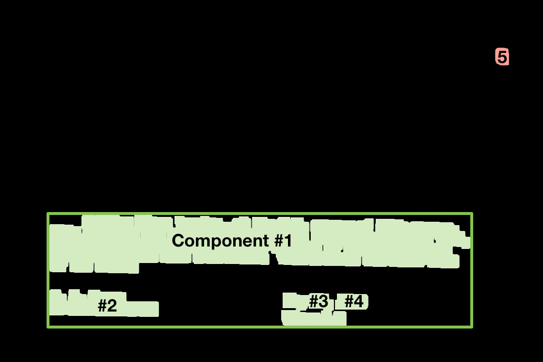 The components are ordered as described above. Component #1 contains the most white pixels in the original image. The first four components are accepted and the fifth is rejected because it hurts the F1 score: